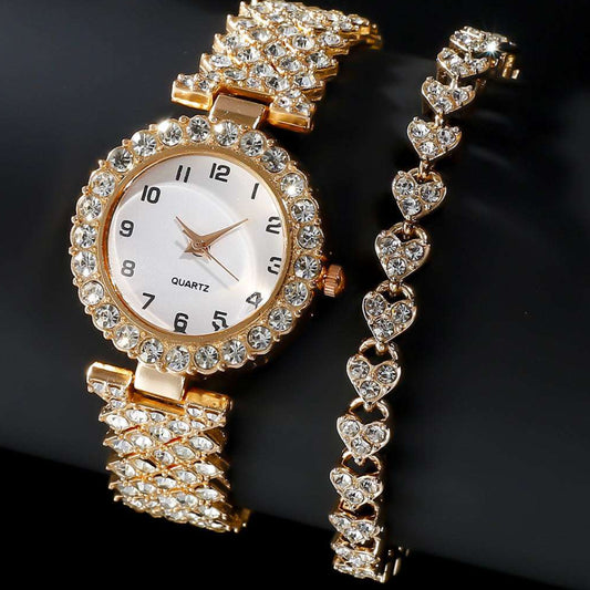 Fashion Love Shape Bracelet Watch Set Diamond Colored Heart Quartz Watch Women's Fashion Jewelry Set Valentine's Day Gift