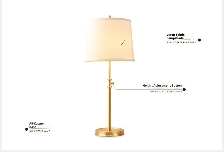 Material: The lamp body is made of brass, and the lampshade is made of linen fabric