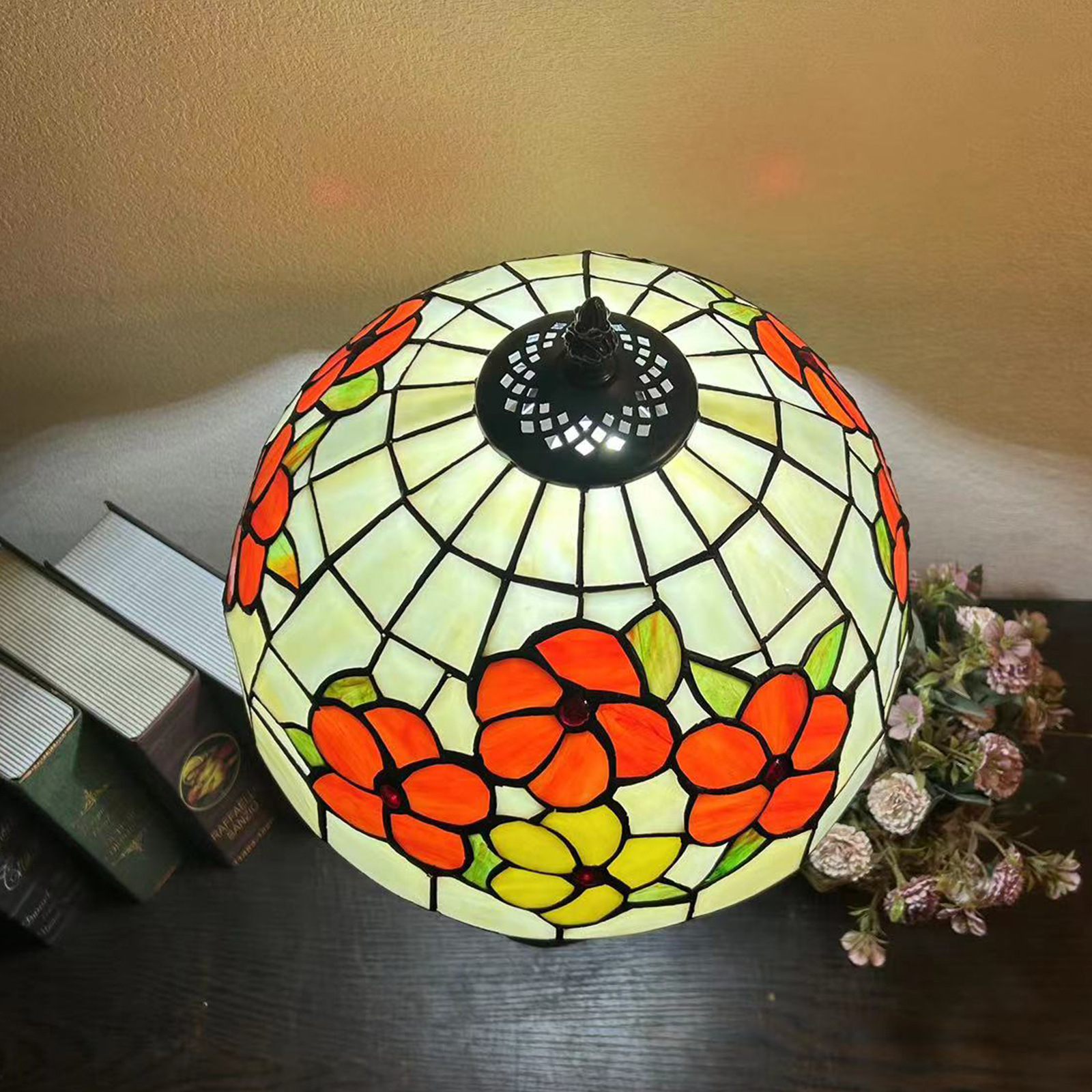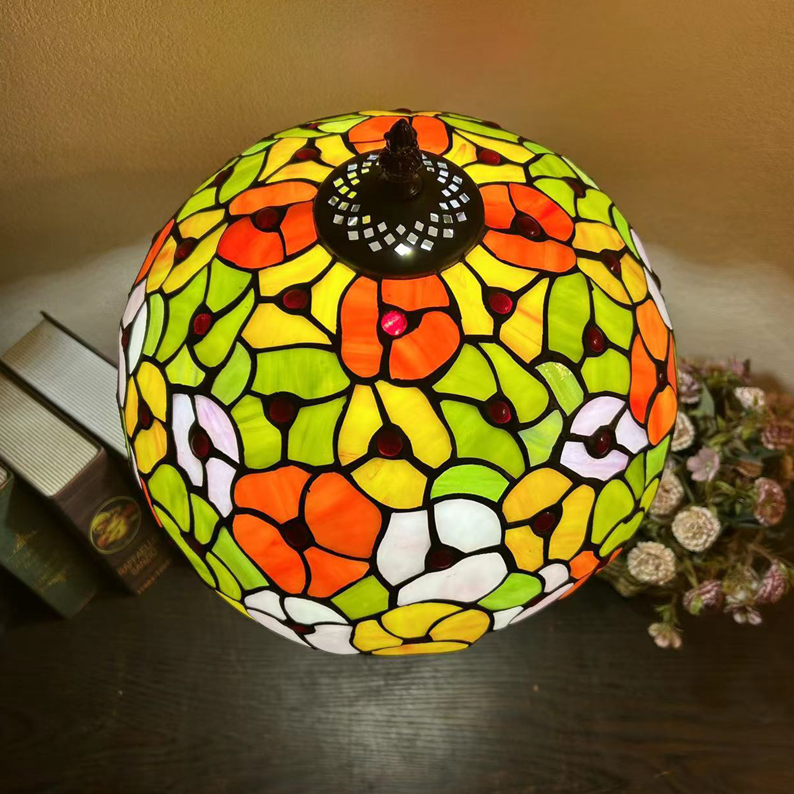 Material: TIFFANY colored glass lampshade resin base