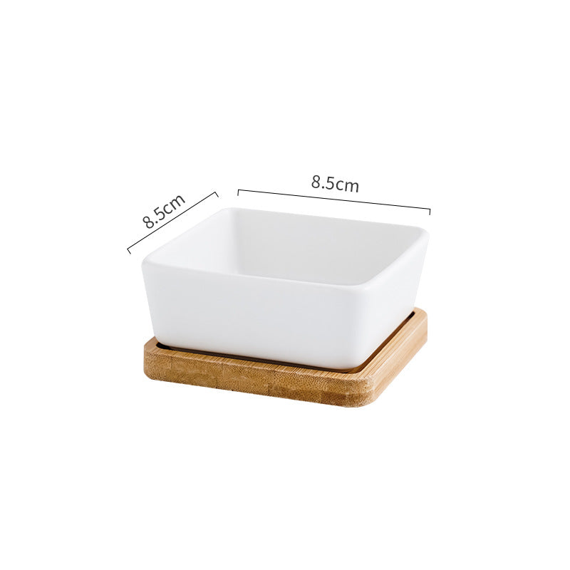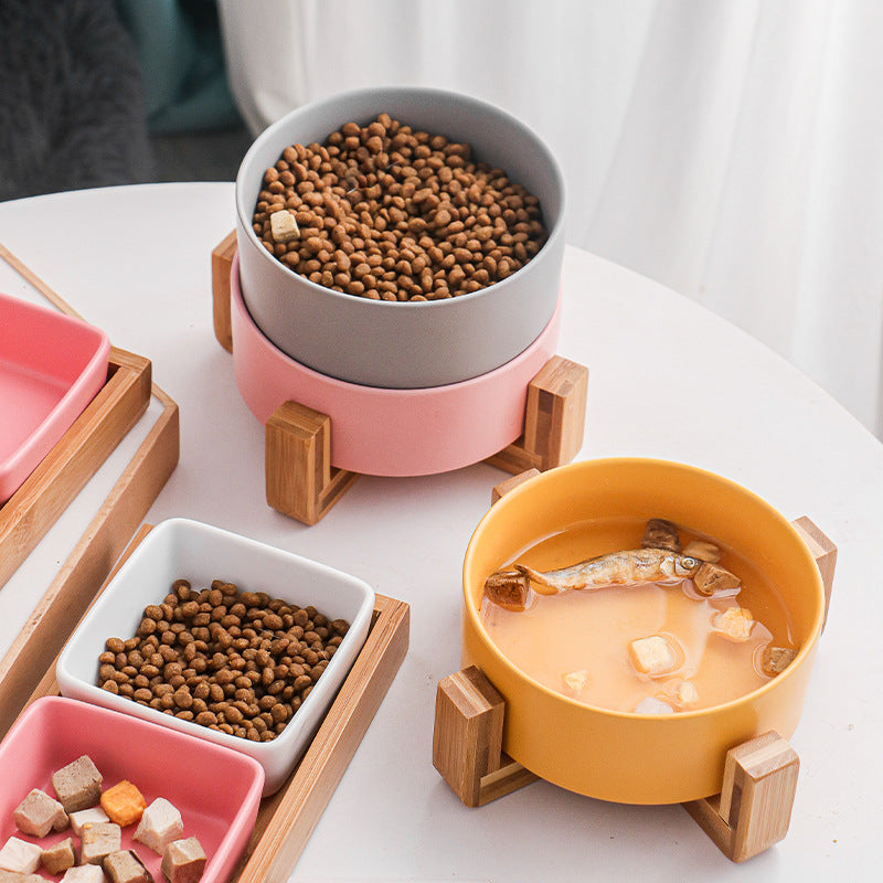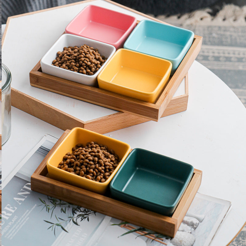 Cat Bowl Snack Plate Ceramic Wood Anti-Tip