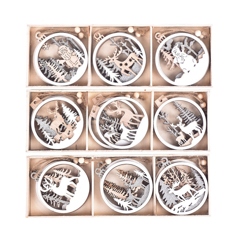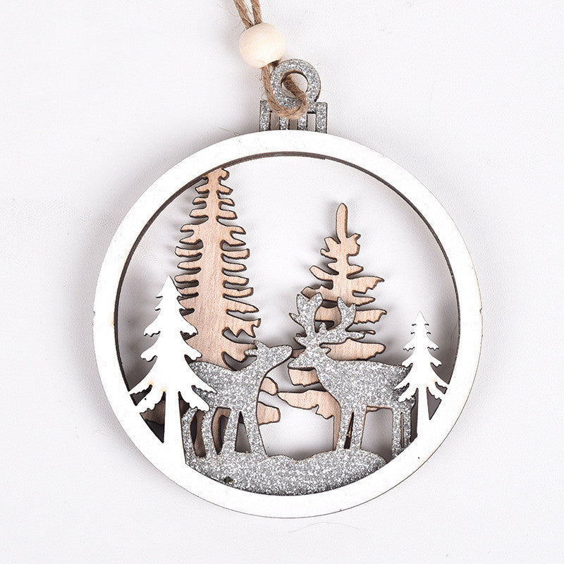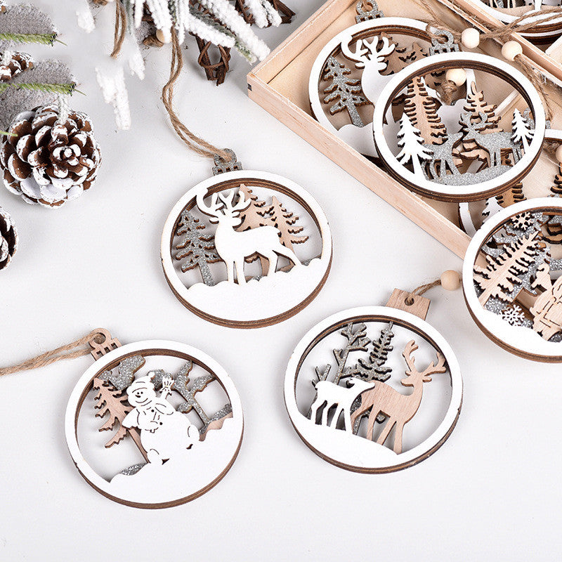 Christmas Decoration Wooden Elk Old Man Snowman Pendant
