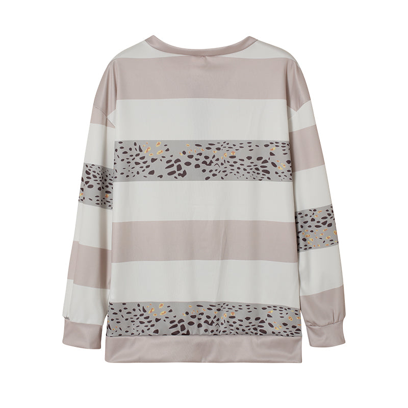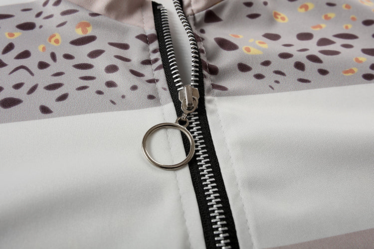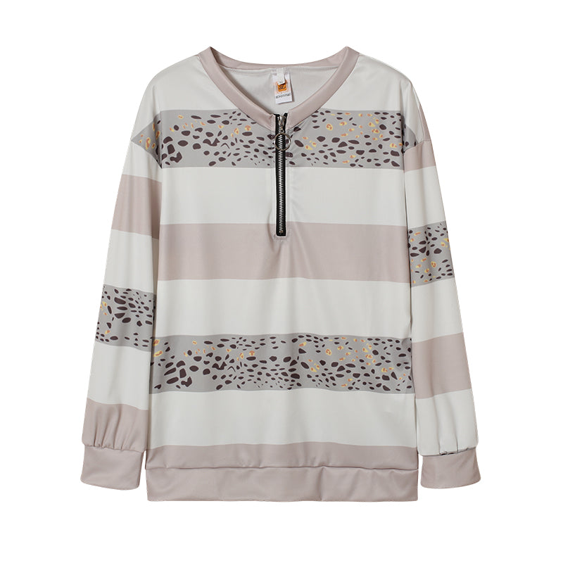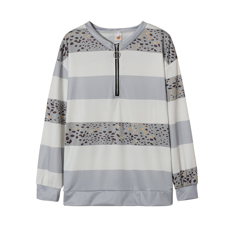 College Style Casual Striped Printed Pullover Loose Zipper Sweater