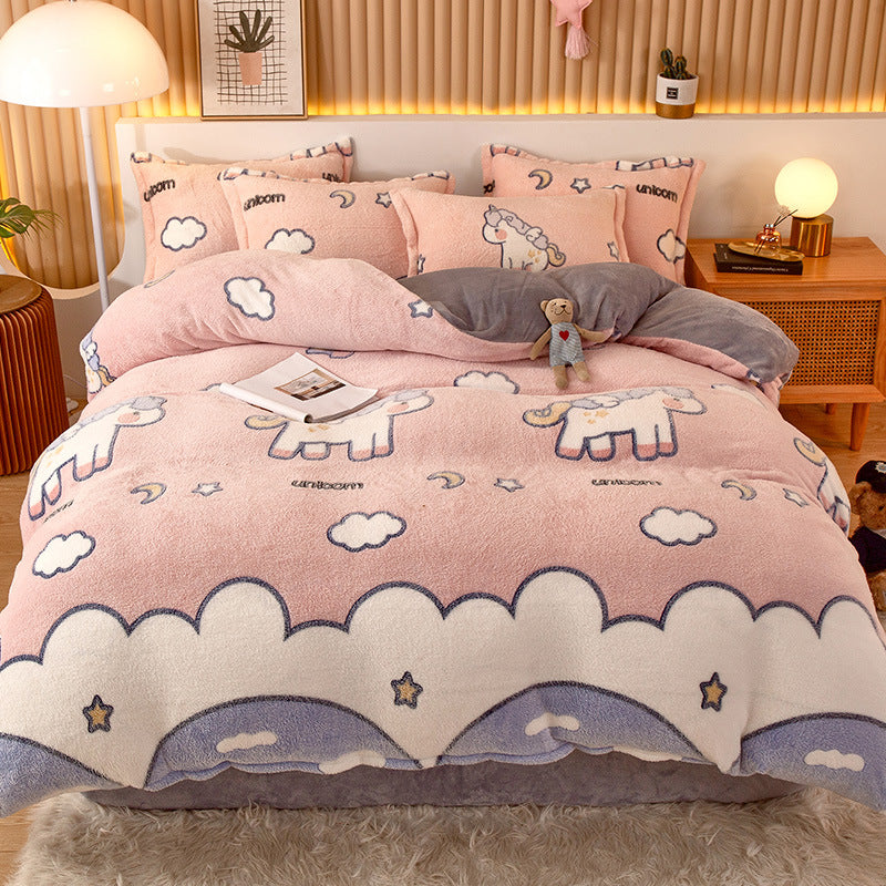 Coral Fleece Duvet Cover Sheet Flannel Pillowcase