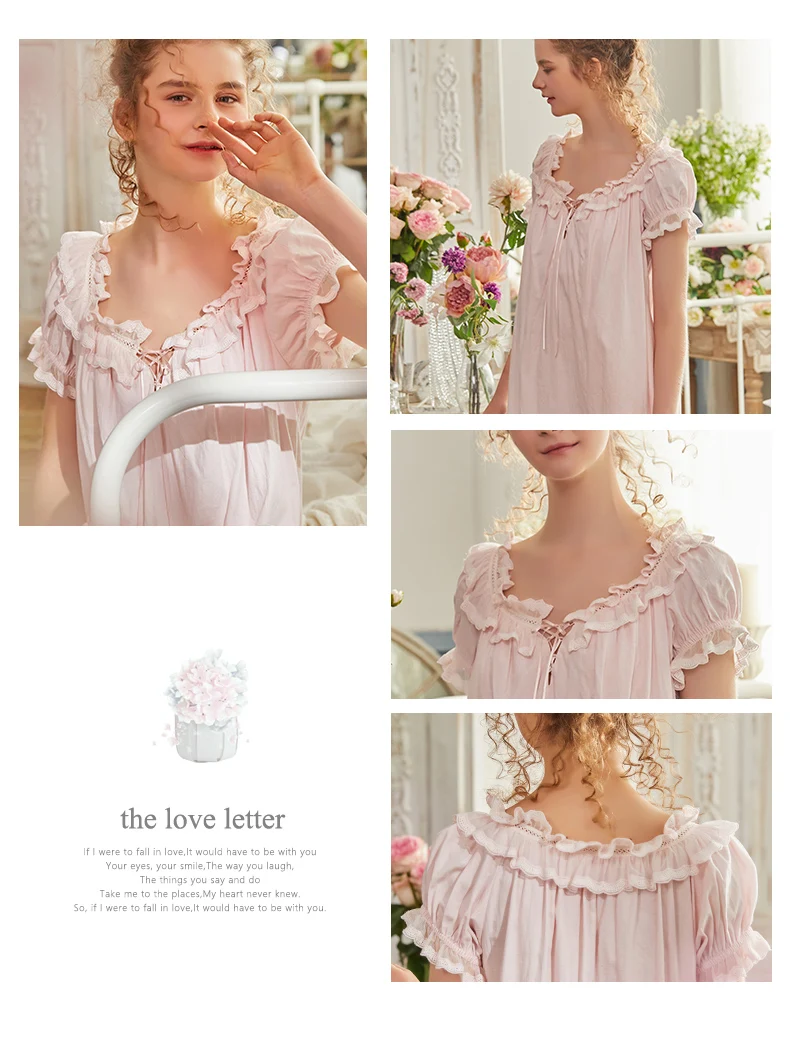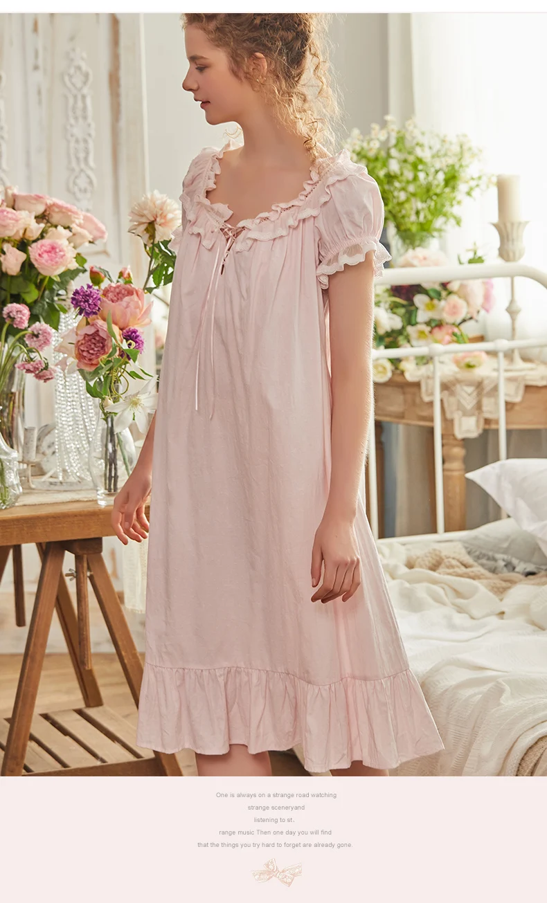 Court Style Female Sweet Princess Short-sleeved Solid Color Household Clothes Pajamas