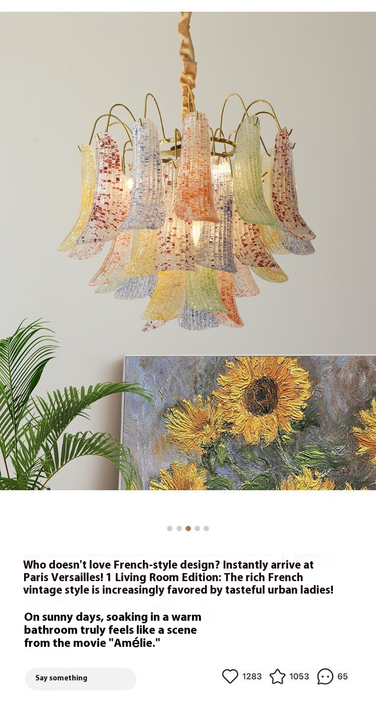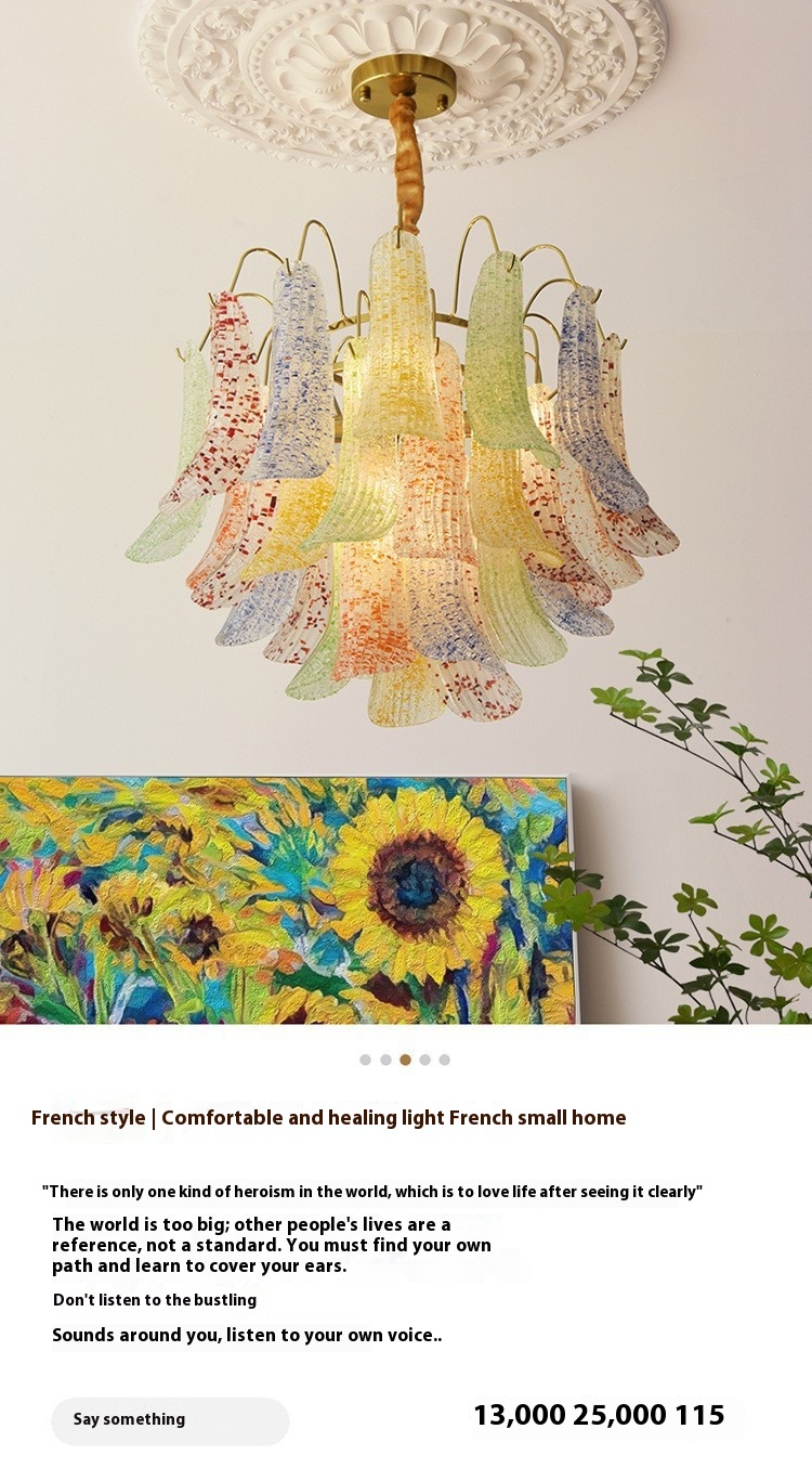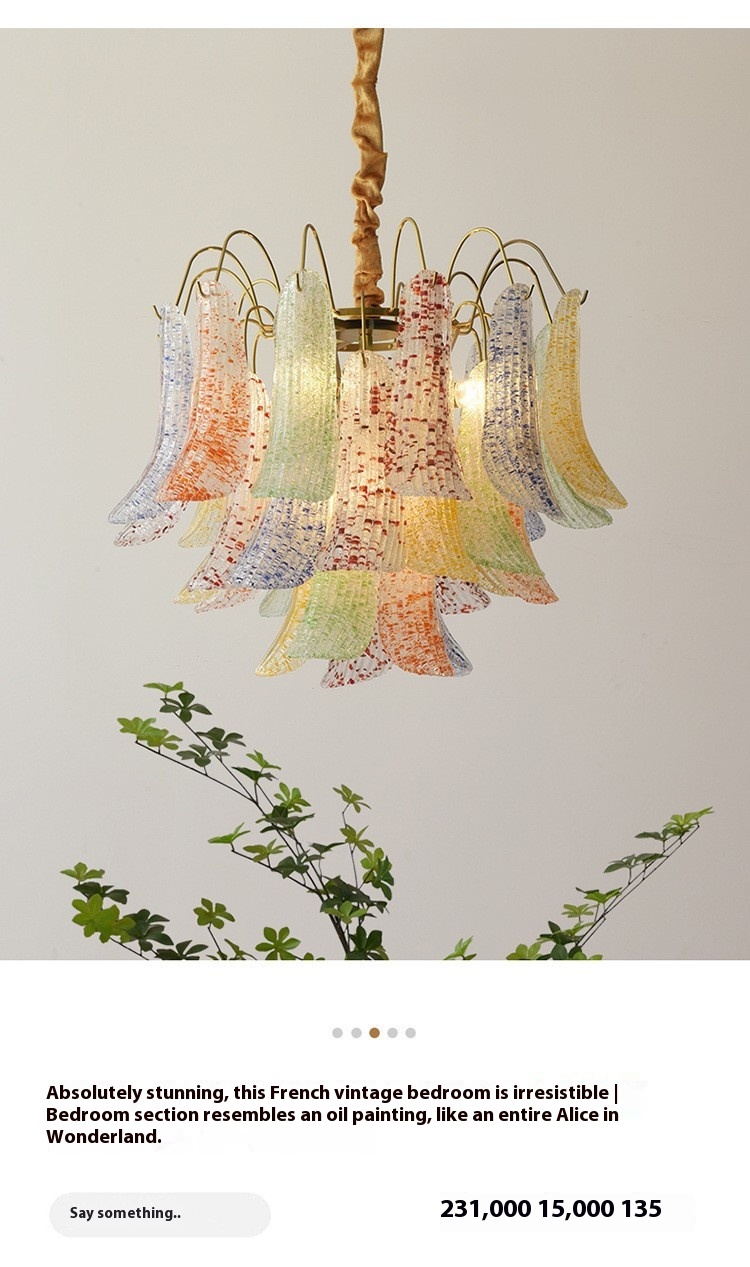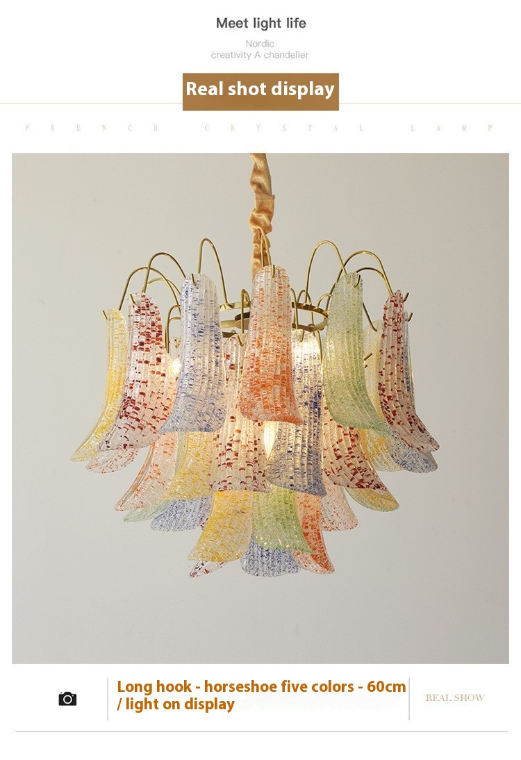 Crystal Shell Chandelier Retro Color Bedroom Glass Lamp