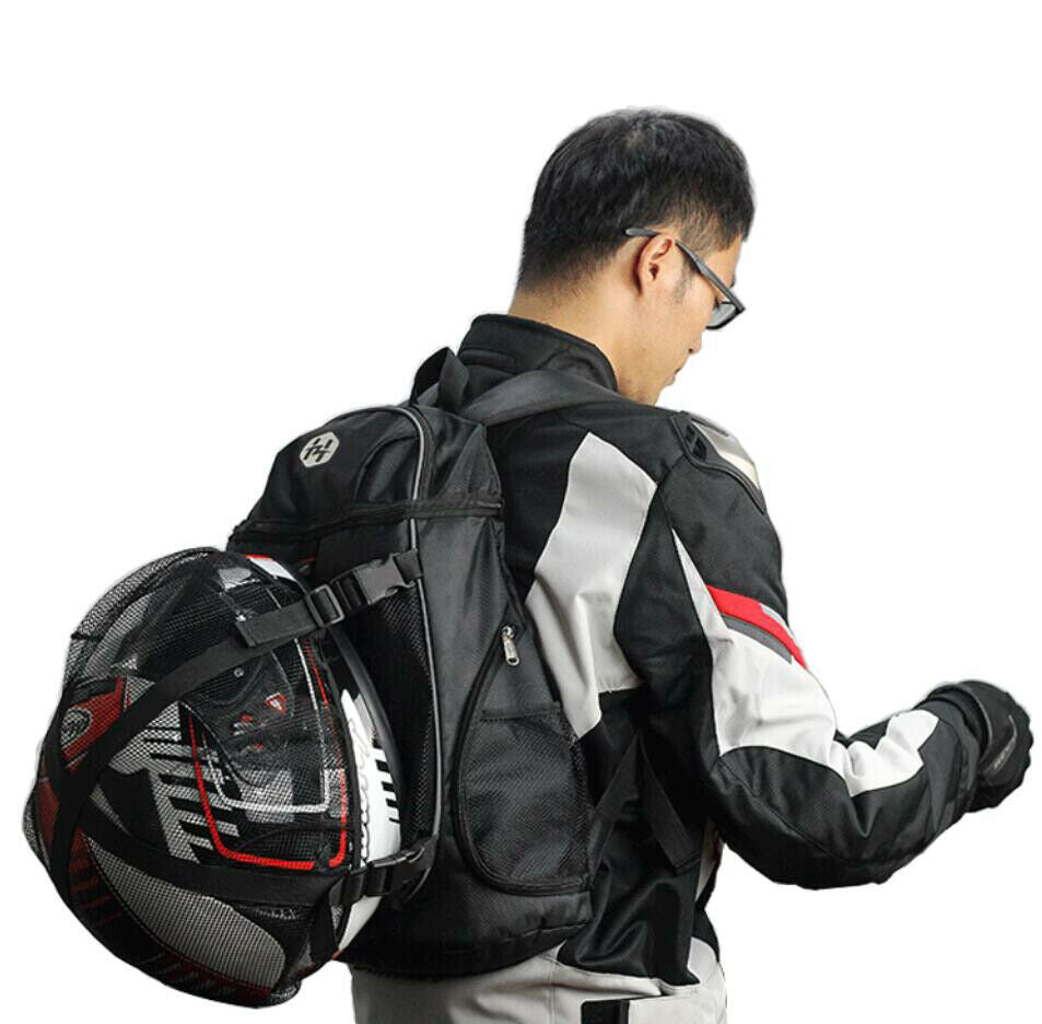 Purpose: Multifunctional motorcycle backpack, a full helmet can be placed in the bag, a 14-15 inch laptop can be placed in the bag, and a mesh bag can be placed outside the bag, which can hold helmets and basketballs. It is very suitable for driving, outdoors, and traveling.