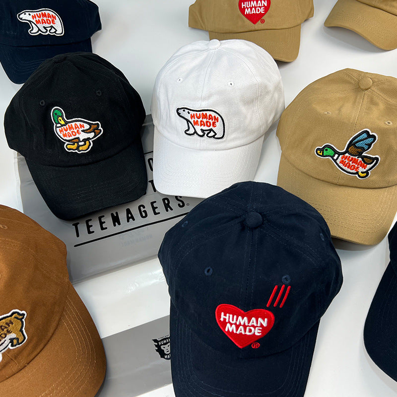 Color: Gray love embroidery baseball cap, navy blue love embroidery baseball cap, khaki love embroidery baseball cap, navy blue duck embroidery baseball cap, khaki duck embroidery baseball cap, khaki standing duck embroidery baseball cap, black standing duck embroidery baseball cap, tibetan blue wild boar embroidered baseball cap, coffee wild boar embroidered baseball cap, black polar bear embroidered baseball cap, tibetan blue polar bear embroidered baseball cap, white polar bear embroidered baseball cap