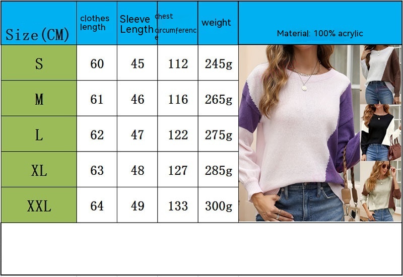 European And American Knitted Temperament Commute Long Sleeve Round Neck Multicolor Sweater