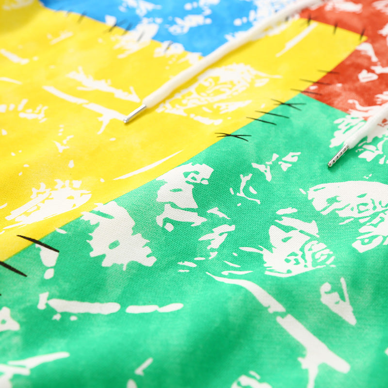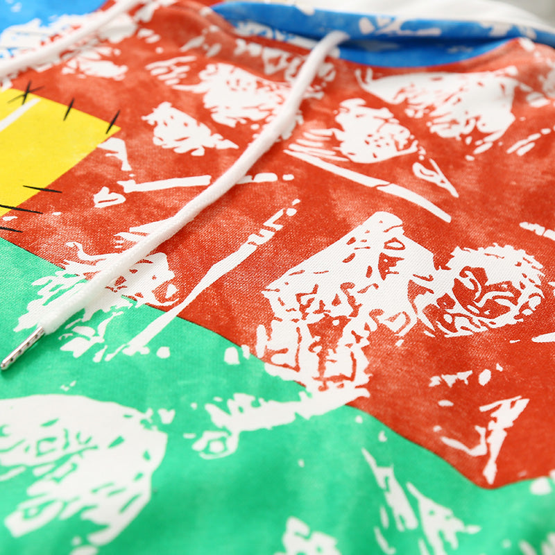 Fashionable Men's Stitching Contrast Graffiti Hooded Sweater