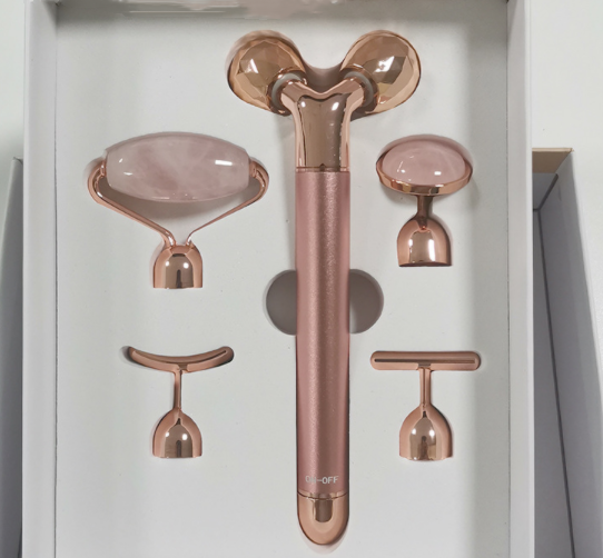 Instruction manual + pink flannel bag + color box + EV jade roller head + jade disc head + U-shaped beauty head + T-shaped beauty head *1