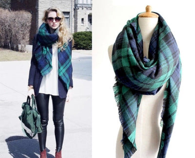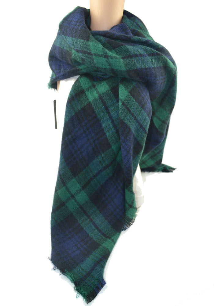 Green Plaid Neutral Acrylic Scarf