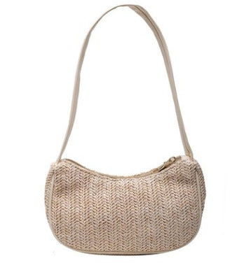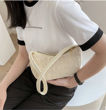 Ladies Fashion One Shoulder Straw Bucket Bag