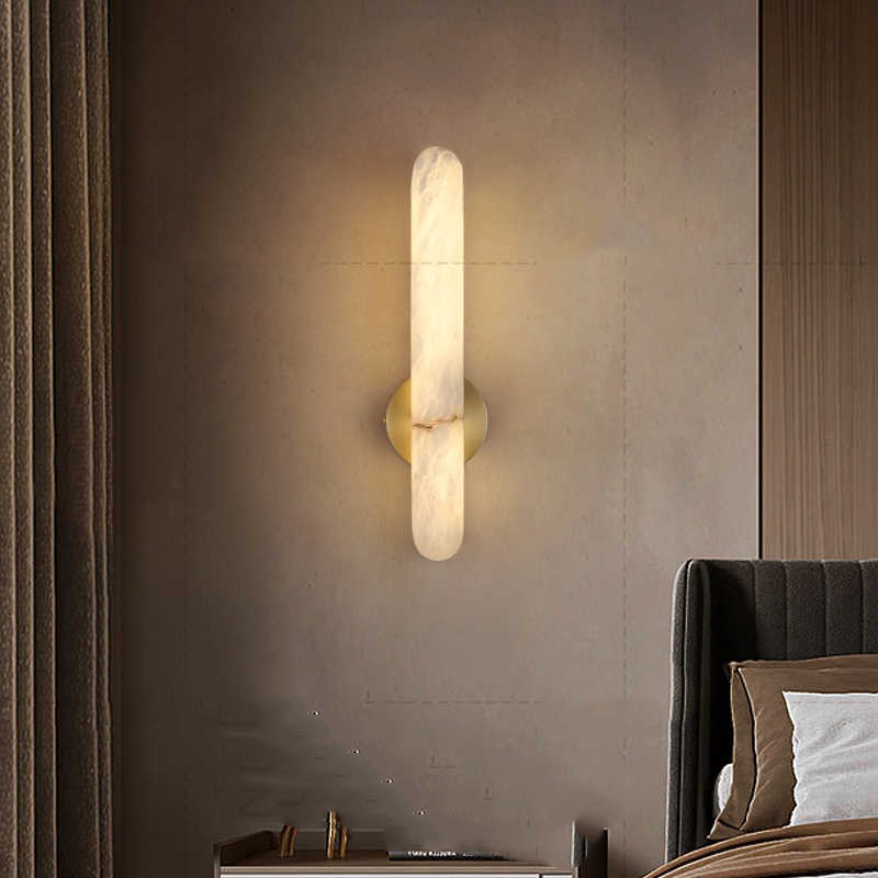 Modern Minimalist Bedroom Bedside Copper Marble Wall Lamp