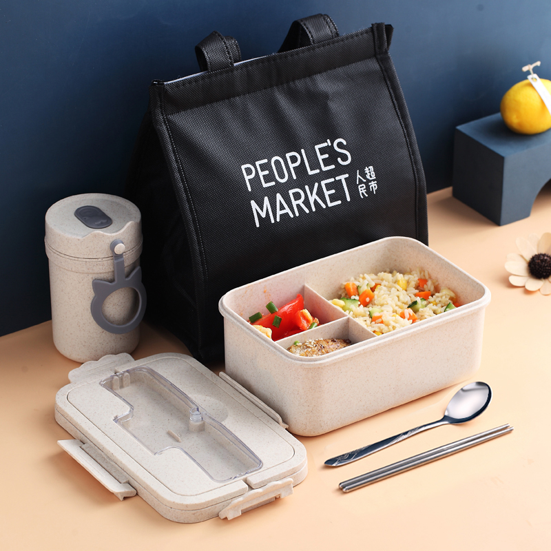 Portable Microwave Wheat Insulated Lunch Box With Lid