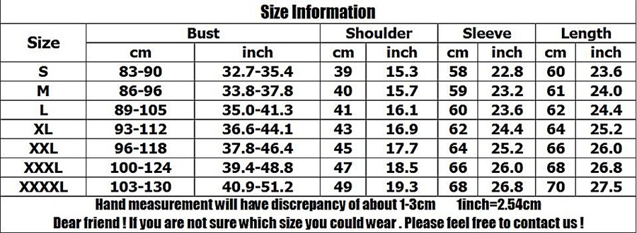 1. Asian sizes are 1 to 2 sizes smaller than European and American people. Choose the larger size if your size between two sizes. Please allow 2-3cm differences due to manual measurement. 2. Please check the size chart carefully before you buy the item, if you don't know how to choose size, please contact our customer service. 3.As you know, the different computers display colors differently, the color of the actual item may vary slightly from the following images.