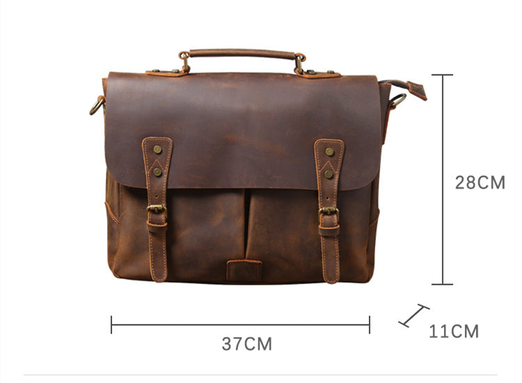 Retro Cowhide Men's Portable Briefcase Shoulder Computer Bag