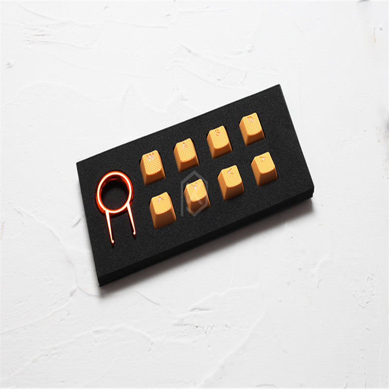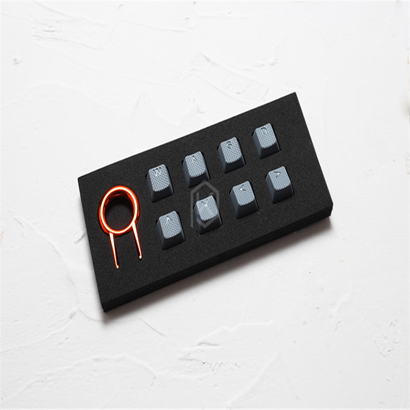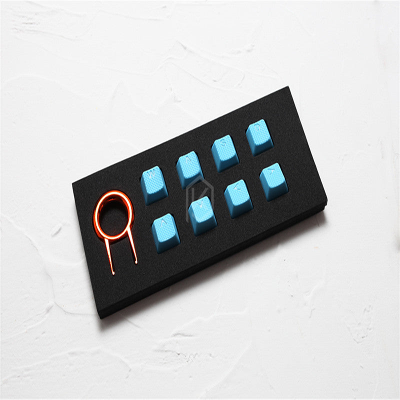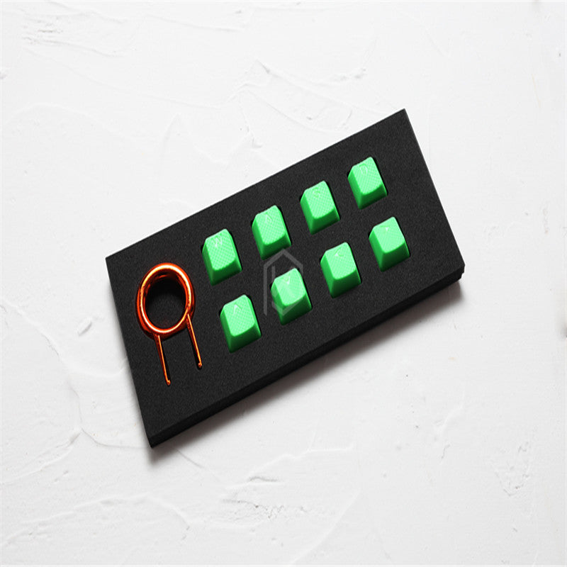 Rubber gaming key caps with 8 keys, please note that this paragraph is a light-transmitting section. It is WASD + arrow keys. The height is OEM height.