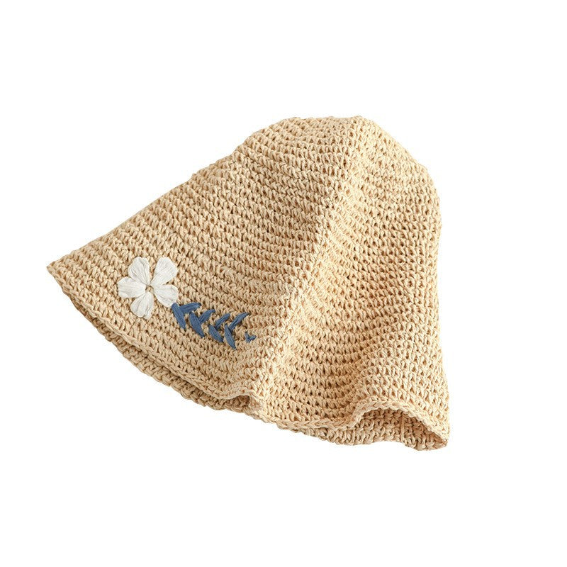 Small Daisy Embroidered Straw Women's Summer Foldable Bucket Hat