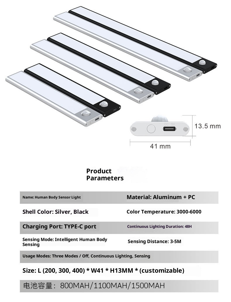 Smart LED Strip Human Sensor Light, Magnetic Self-adhesive Wardrobe Light