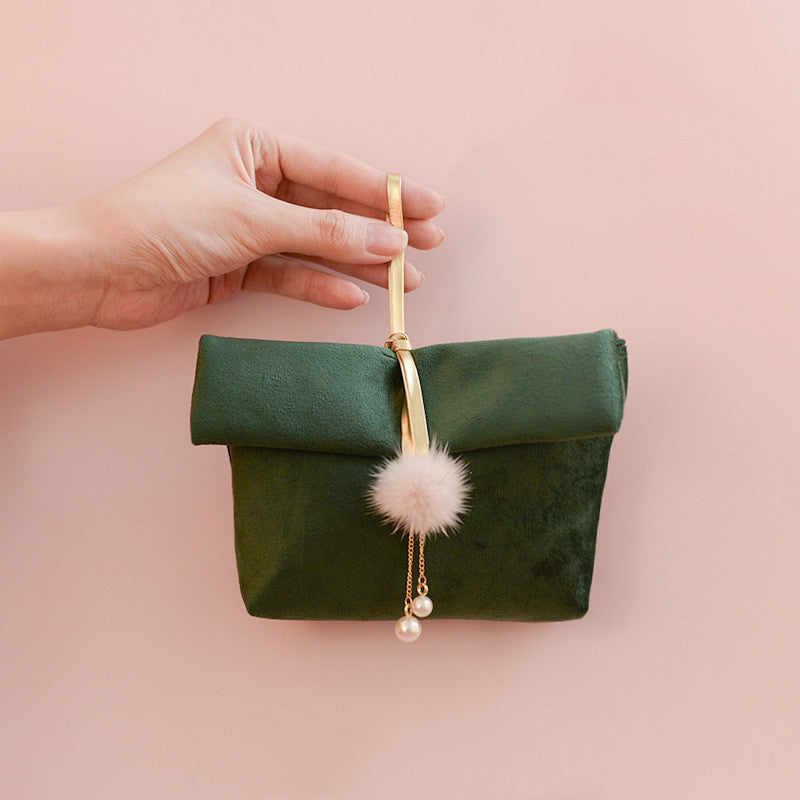 Color: dogwood pink velvet velvet bag, classic red velvet velvet bag, sky blue velvet velvet bag, autumn leaf yellow velvet velvet bag, forest green velvet velvet bag