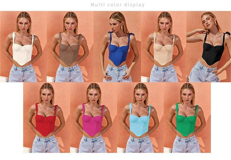 Women's Clothing Autumn Style Sexy Fishbone Straps Square Neck Navel Show Back Outside Wearing Suspender Top