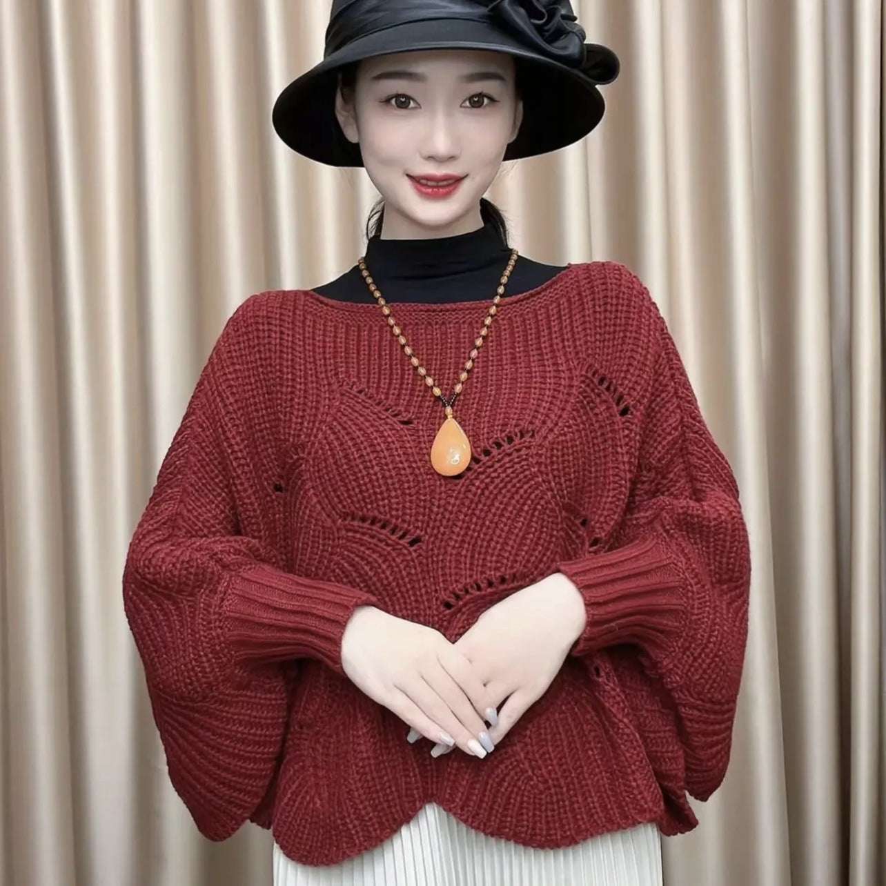 Women's Thermal Pullover Shawl Batwing Sleeve Sweater