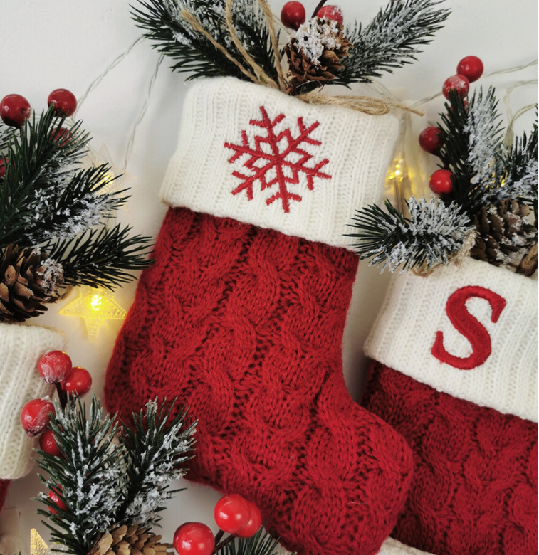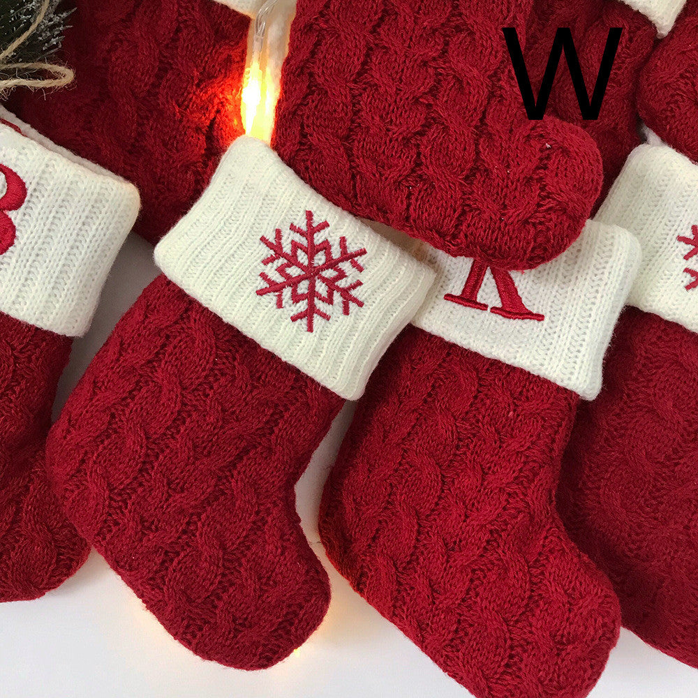 Woolen Knitted Christmas Letter Socks Decoration Pendant Gift Bag